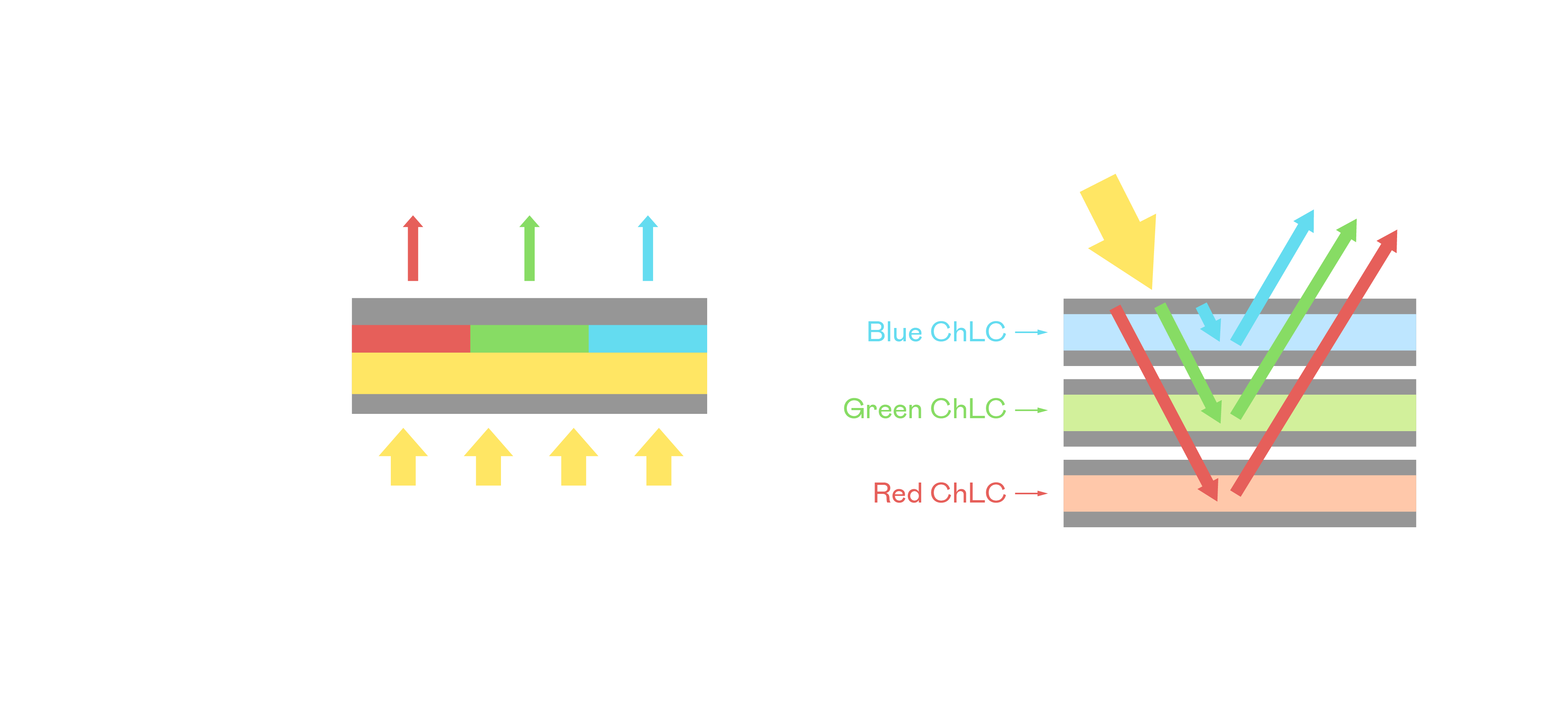 果冻传媒原创膽固醇液晶顯示器是由紅、綠、藍三層膽固醇液晶面板堆疊而成,並採用無彩色濾光片設計,減少環境光在反射過程中的損耗。